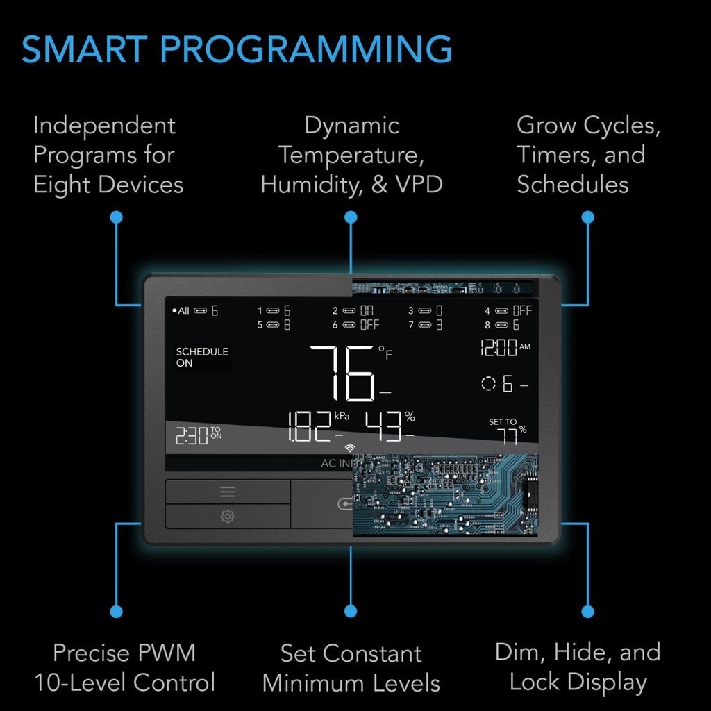 AC Infinity CONTROLLER 69 PRO+, Independent Programs for Eight Devices, Dynamic VPD, Temperature, Humidity, Scheduling, Cycles, Levels Control, Data App, Bluetooth + WiFi